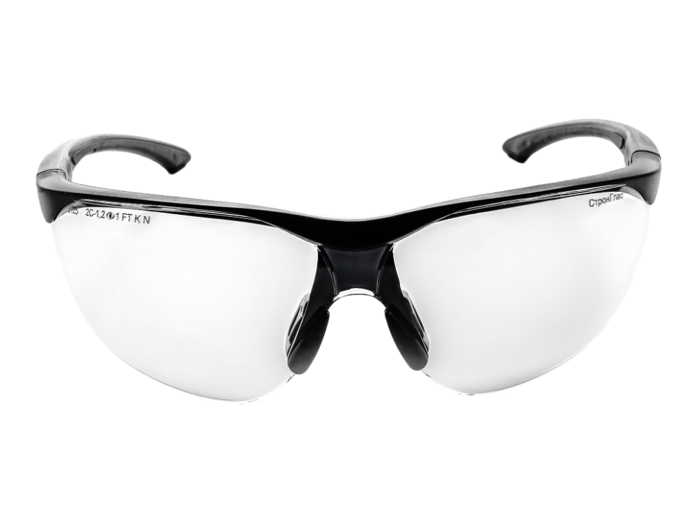 - Стекло с бесцветным светофильтром из поликарбоната с покрытием СтронГлас (двустороннее твердое покрытие высокого качества, устойчивое к запотеванию, истиранию и царапинам, сохраняющее свои свойства при интенсивной эксплуатации, в т.ч. при работе с абразивами).