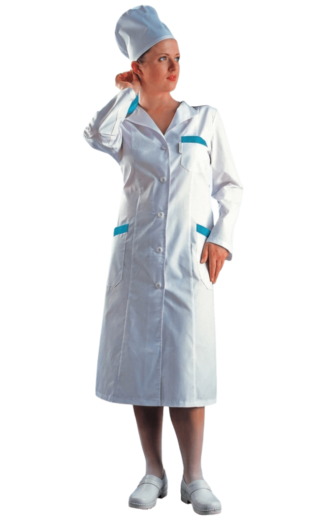 Халат женский ФЛОКС® белый с голубой отделкой (г. Тула)